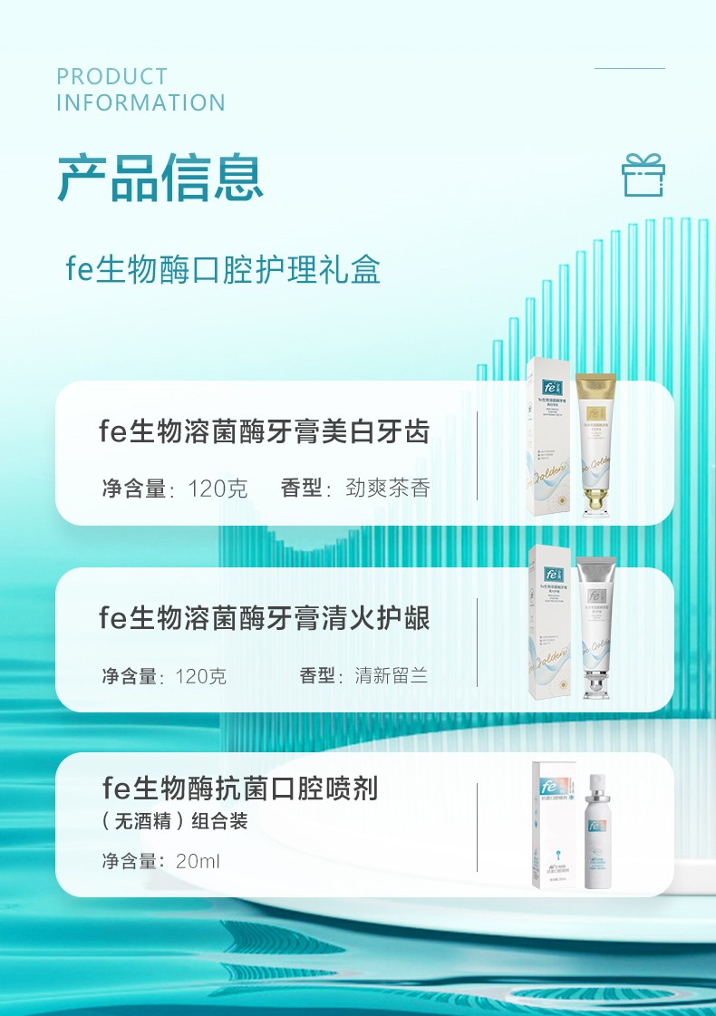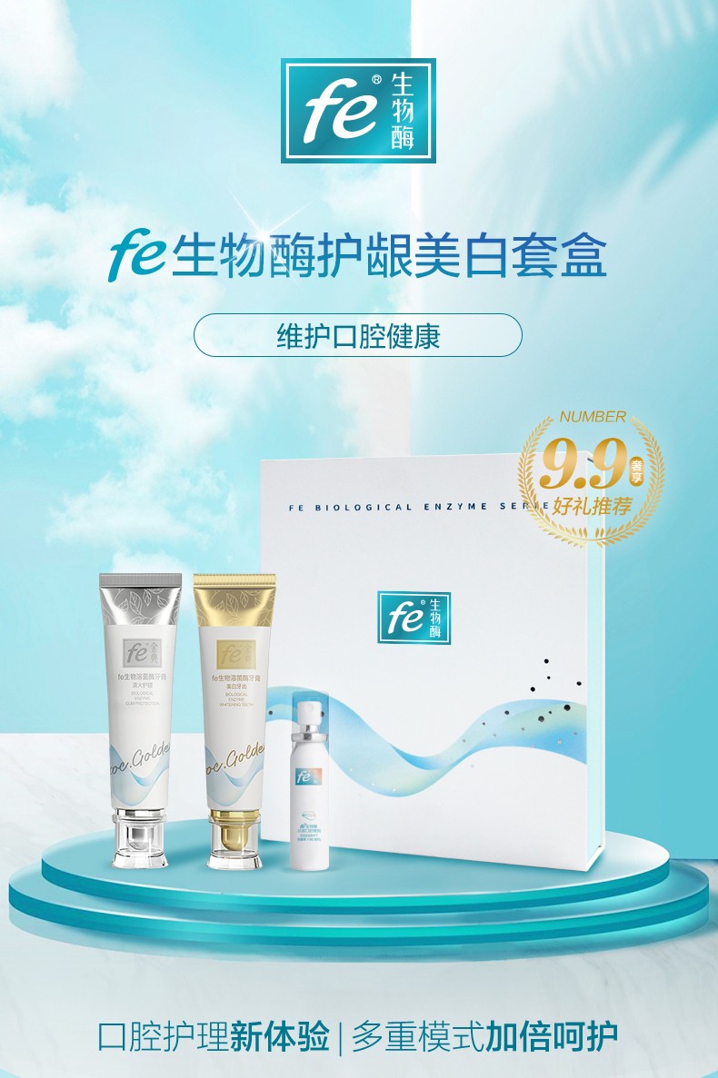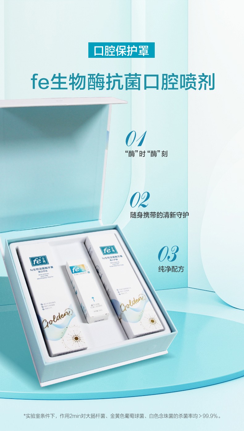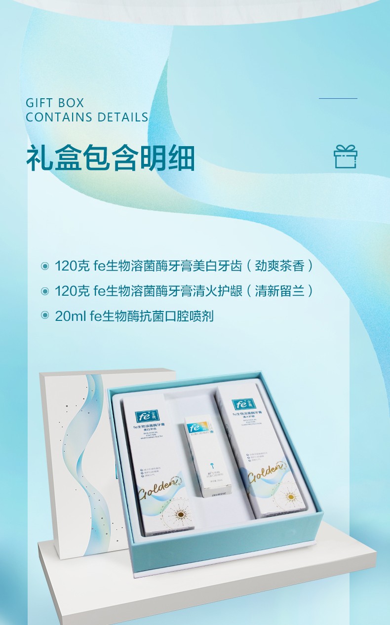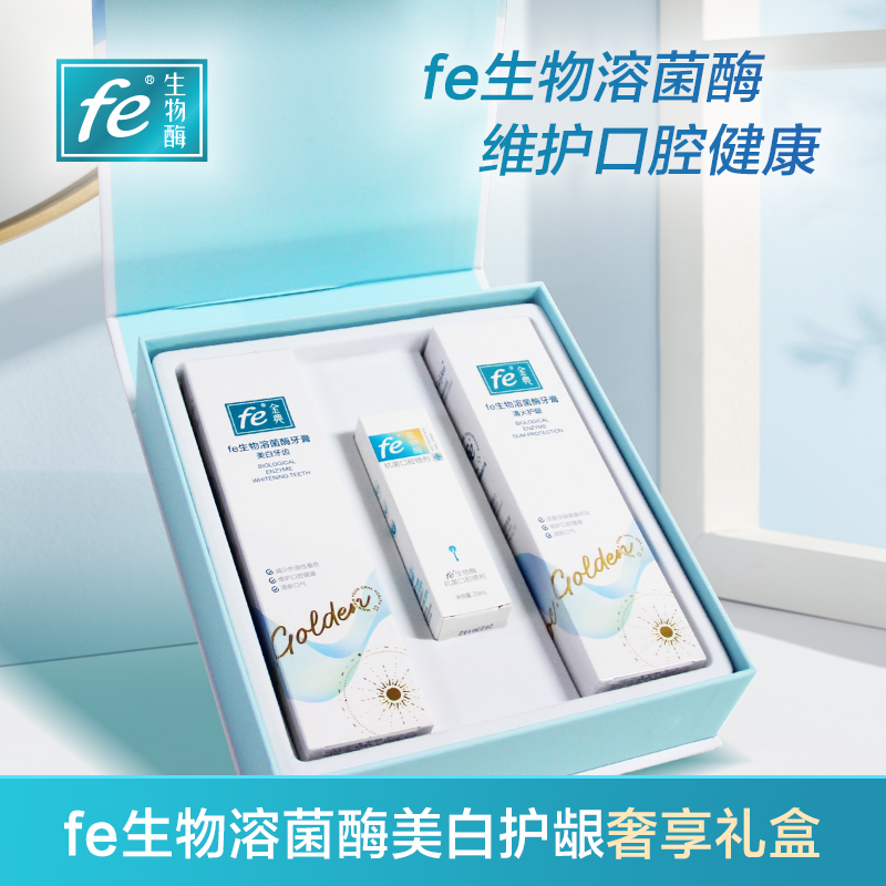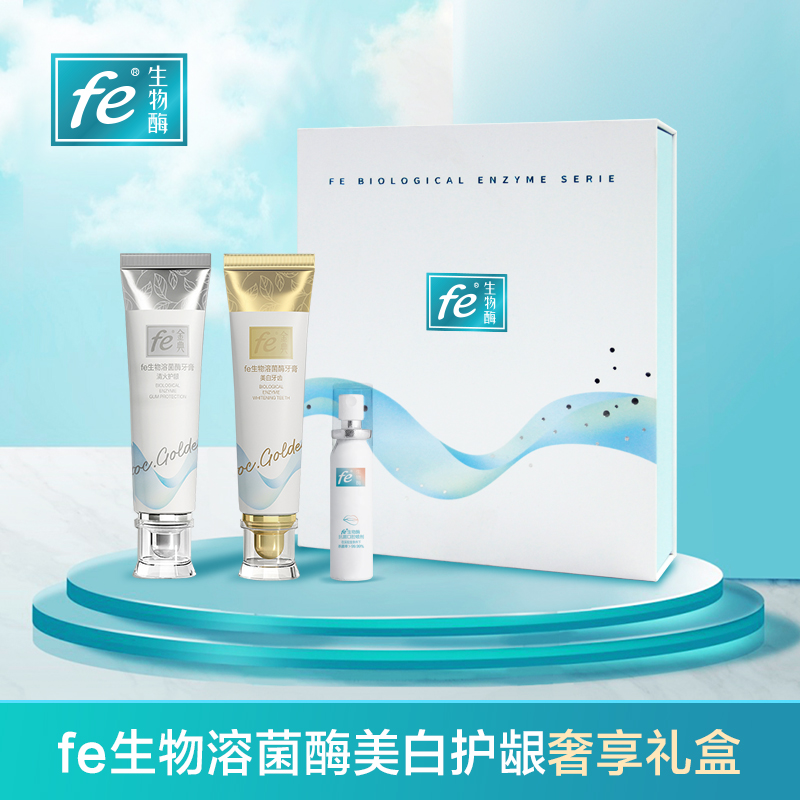 fe生物溶菌酶口腔礼盒套装148克×2早晚牙膏+20ml口喷