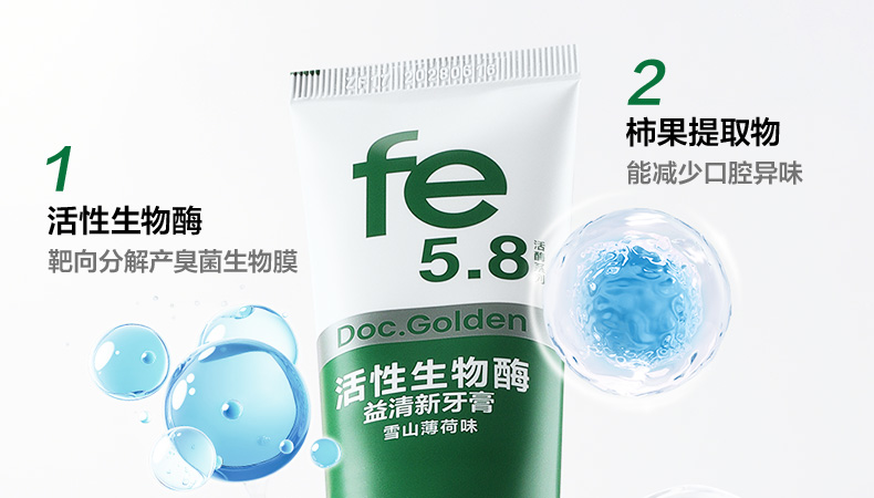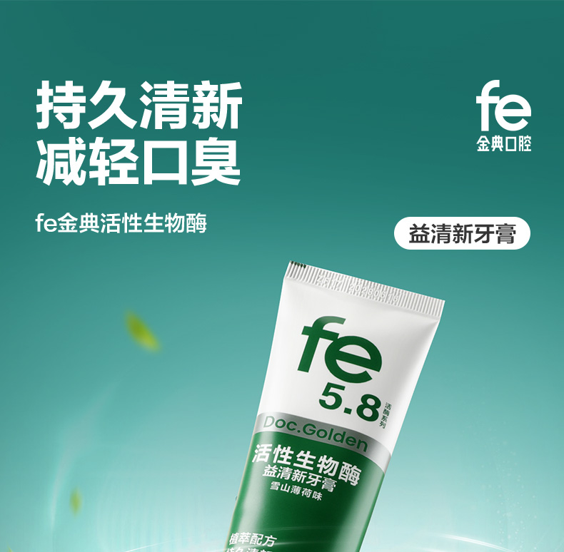 fe金典益清新牙膏持久清新减轻口臭活性生物酶口腔护理家用不含氟