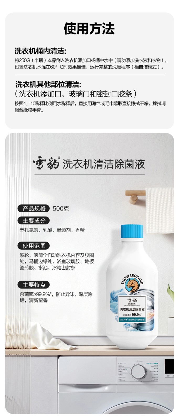 500g雪豹洗衣机清洁除菌液(生态家清)